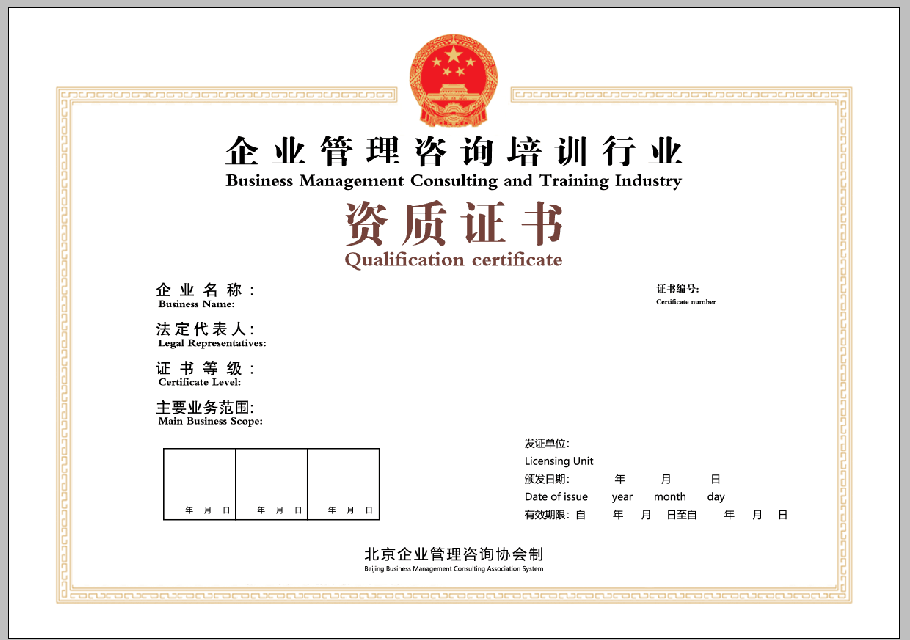 企業(yè)管理咨詢培訓(xùn)行業(yè)資質(zhì)證書