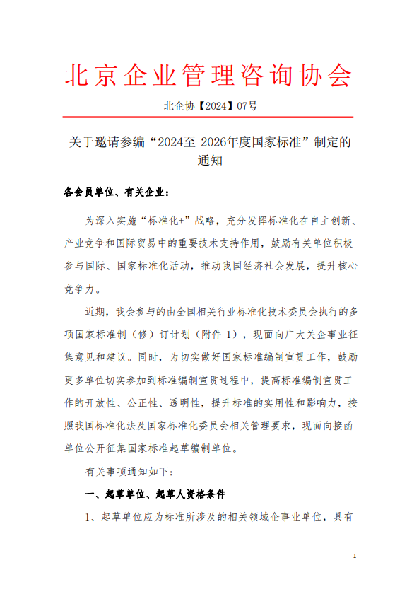 關(guān)于邀請參編“2024至 2026年度國家標準”制定的通知