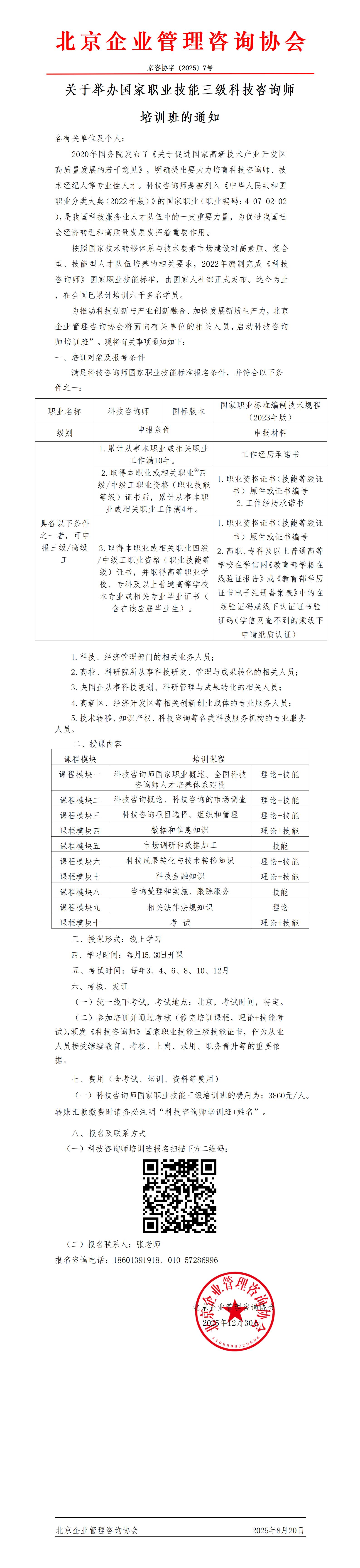 關(guān)于舉辦國家職業(yè)技能三級科技咨詢師 培訓(xùn)班的通知